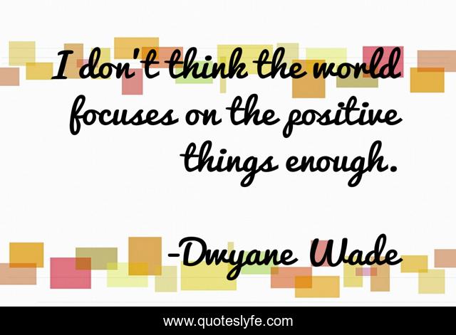 This page presents the quote "I don't think the world focuses on the positive things enough.". Author of this quote is Dwyane Wade. This quote is about world, enough, think,.