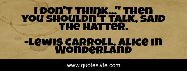 "Lewis Carroll, Alice in Wonderland Quotes." Quoteslyfe.com, 2025. Fri. 05 Dec. 2025. <https://www.quoteslyfe.com/quote/I-don-t-think-then-you-shouldn-168430>.