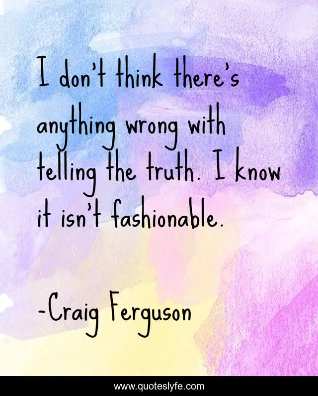 This page presents the quote "I don’t think there’s anything wrong with telling the truth. I know it isn’t fashionable.". Author of this quote is Craig Ferguson. This quote is about fashion, truth, morality,.