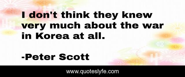 This page presents the quote "I don't think they knew very much about the war in Korea at all.". Author of this quote is Peter Scott. This quote is about very, knew, think,.