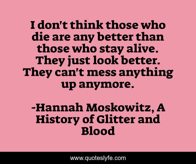 "Hannah Moskowitz, A History of Glitter and Blood Quotes." Quoteslyfe.com, 2025. Mon. 08 Dec. 2025. <https://www.quoteslyfe.com/quote/I-don-t-think-those-who-die-122744>.