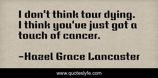 This page presents the quote "I don't think tour dying. I think you've just got a touch of cancer.". Author of this quote is Hazel Grace Lancaster. .