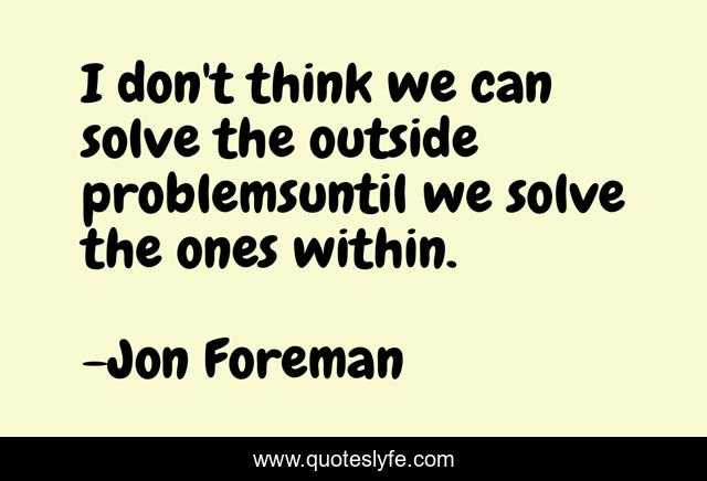 This page presents the quote "I don't think we can solve the outside problemsuntil we solve the ones within.". Author of this quote is Jon Foreman. .