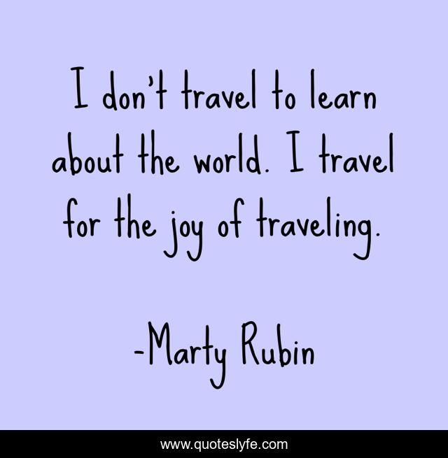 This page presents the quote "I don't travel to learn about the world. I travel for the joy of traveling.". Author of this quote is Marty Rubin. This quote is about joy, travel, the-world, learning,.