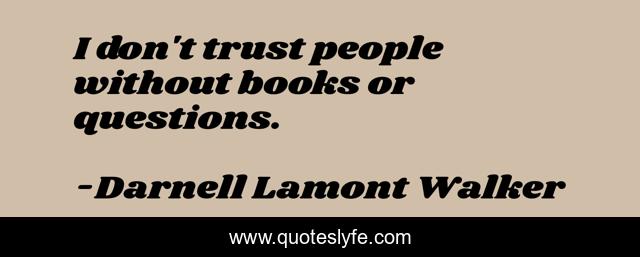 This page presents the quote "I don't trust people without books or questions.". Author of this quote is Darnell Lamont Walker. This quote is about read, trust, books, reading, questions,.