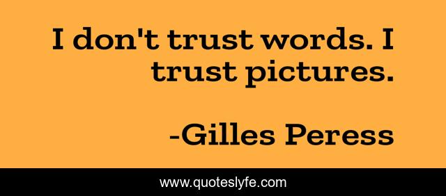 This page presents the quote "I don't trust words. I trust pictures.". Author of this quote is Gilles Peress. .