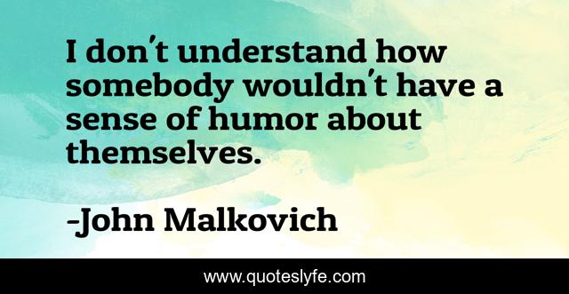 This page presents the quote "I don't understand how somebody wouldn't have a sense of humor about themselves.". Author of this quote is John Malkovich. This quote is about sense of humor, understand,.