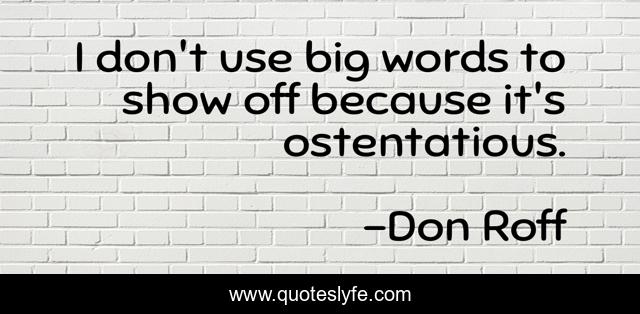 This page presents the quote "I don't use big words to show off because it's ostentatious.". Author of this quote is Don Roff. This quote is about funny, ostentatious, show-off, humorous, pretentious, witty, ironic, comedy,.