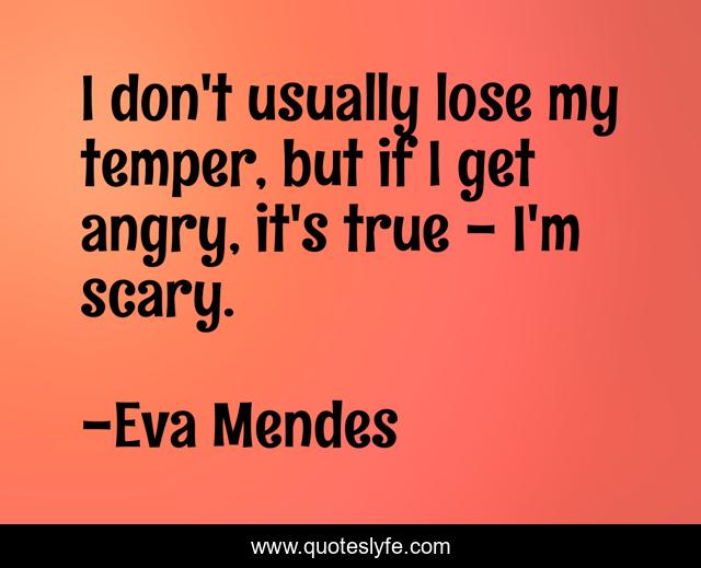 This page presents the quote "I don't usually lose my temper, but if I get angry, it's true - I'm scary.". Author of this quote is Eva Mendes. This quote is about scary, angry, true,.