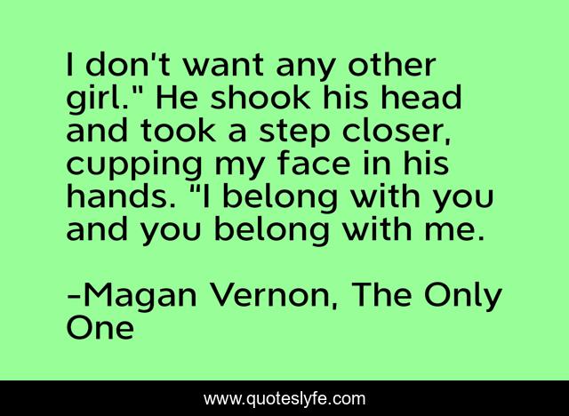 This page presents the quote "I don’t want any other girl.” He shook his head and took a step closer, cupping my face in his hands. “I belong with you and you belong with me.". Author of this quote is Magan Vernon, The Only One. This quote is about love, swoon, new-adult, john-boy, college-romance, affection, the-only-one,.