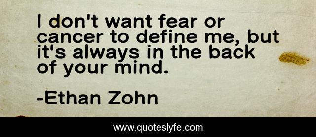 This page presents the quote "I don't want fear or cancer to define me, but it's always in the back of your mind.". Author of this quote is Ethan Zohn. This quote is about me, mind, cancer,.