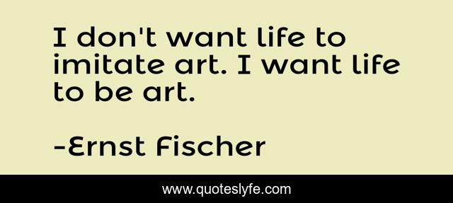 This page presents the quote "I don't want life to imitate art. I want life to be art.". Author of this quote is Ernst Fischer. This quote is about imitate, life,.