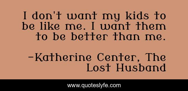 This page presents the quote "I don't want my kids to be like me. I want them to be better than me.". Author of this quote is Katherine Center, The Lost Husband. .