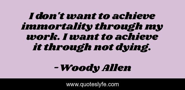 This page presents the quote "I don't want to achieve immortality through my work. I want to achieve it through not dying.". Author of this quote is Woody Allen. This quote is about death, achieve,.