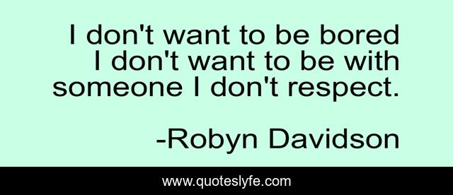 This page presents the quote "I don't want to be bored I don't want to be with someone I don't respect.". Author of this quote is Robyn Davidson. This quote is about bored, someone,.