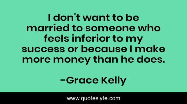 This page presents the quote "I don't want to be married to someone who feels inferior to my success or because I make more money than he does.". Author of this quote is Grace Kelly. This quote is about success, relationship,.