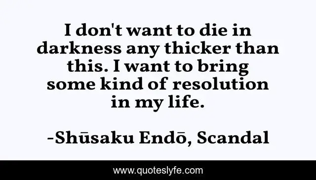 This page presents the quote "I don't want to die in darkness any thicker than this. I want to bring some kind of resolution in my life.". Author of this quote is Shūsaku Endō, Scandal. This quote is about resolutions, death,.