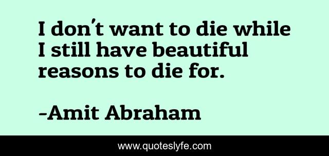 This page presents the quote "I don't want to die while I still have beautiful reasons to die for.". Author of this quote is Amit Abraham. This quote is about die, life-and-living, reasons-for-living,.