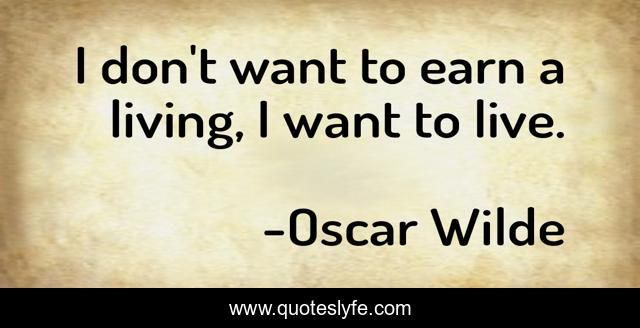 This page presents the quote "I don't want to earn a living, I want to live.". Author of this quote is Oscar Wilde. This quote is about irish-writer, victorian, gothic, sublime, oscar-wilde,.