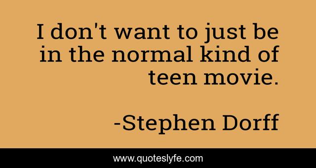 This page presents the quote "I don't want to just be in the normal kind of teen movie.". Author of this quote is Stephen Dorff. This quote is about kind, just,.
