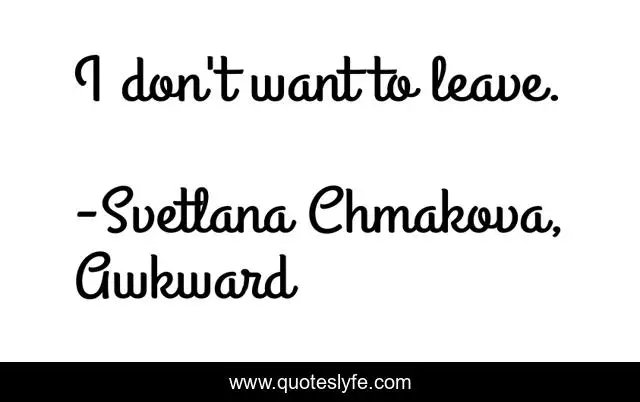 "Svetlana Chmakova, Awkward Quotes." Quoteslyfe.com, 2025. Mon. 08 Dec. 2025. <https://www.quoteslyfe.com/quote/I-don-t-want-to-leave-50784>.