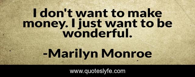 This page presents the quote "I don't want to make money. I just want to be wonderful.". Author of this quote is Marilyn Monroe. .