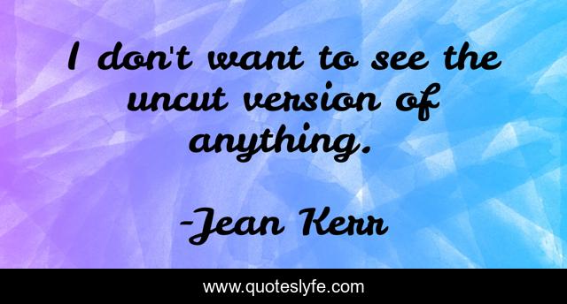This page presents the quote "I don't want to see the uncut version of anything.". Author of this quote is Jean Kerr. This quote is about critics, criticism,.