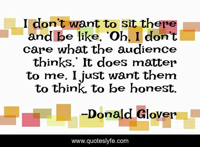 This page presents the quote "I don’t want to sit there and be like, ‘Oh, I don’t care what the audience thinks.’ It does matter to me. I just want them to think, to be honest.". Author of this quote is Donald Glover. This quote is about criticism, art,.