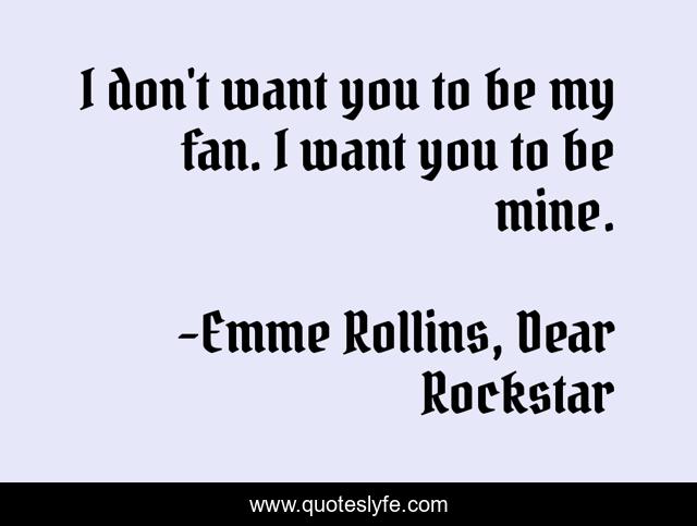 This page presents the quote "I don't want you to be my fan. I want you to be mine.". Author of this quote is Emme Rollins, Dear Rockstar. This quote is about possession, possessive, new-adult-fiction, love, rock-star, rockstar, alpha, mine, new-adult,.