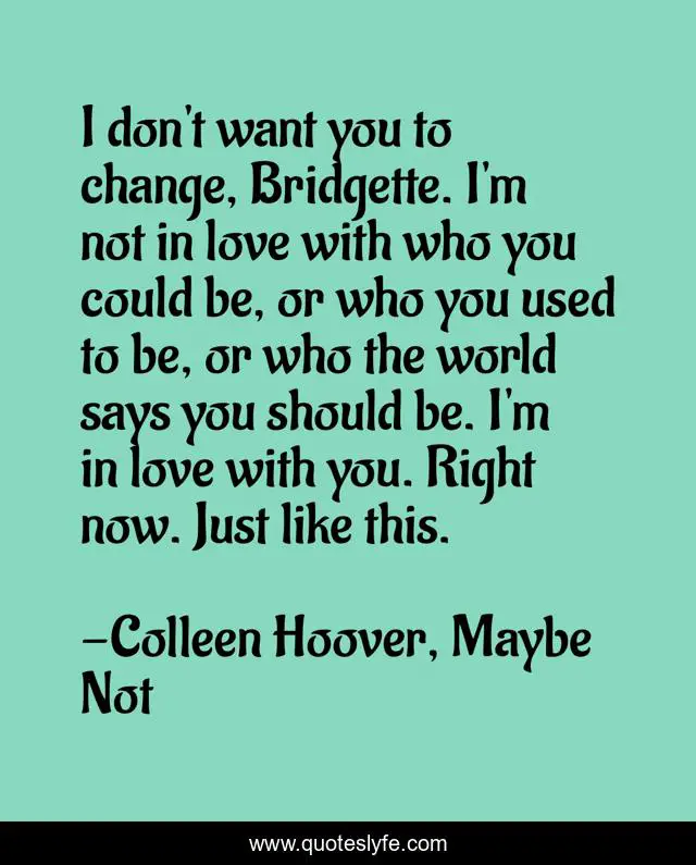 "Colleen Hoover, Maybe Not Quotes." Quoteslyfe.com, 2025. Fri. 05 Dec. 2025. <https://www.quoteslyfe.com/quote/I-don-t-want-you-to-change-212501>.
