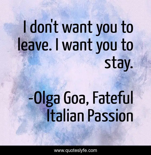 "Olga Goa, Fateful Italian Passion Quotes." Quoteslyfe.com, 2025. Mon. 08 Dec. 2025. <https://www.quoteslyfe.com/quote/I-don-t-want-you-to-leave-22800>.
