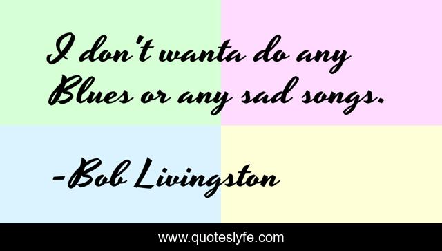 This page presents the quote "I don't wanta do any Blues or any sad songs.". Author of this quote is Bob Livingston. This quote is about blues, sad songs, songs,.