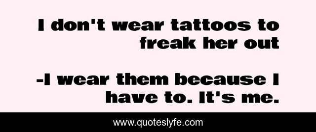 "I wear them because I have to. It's me. Quotes." Quoteslyfe.com, 2025. Sat. 06 Dec. 2025. <https://www.quoteslyfe.com/quote/I-don-t-wear-tattoos-to-freak-190453>.