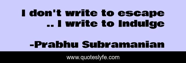 This page presents the quote "I don't write to escape .. I write to Indulge". Author of this quote is Prabhu Subramanian. .