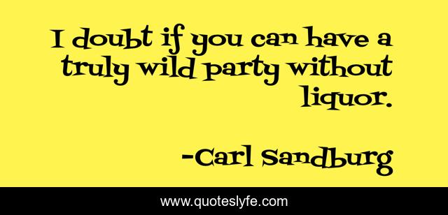 This page presents the quote "I doubt if you can have a truly wild party without liquor.". Author of this quote is Carl Sandburg. This quote is about party, doubt,.