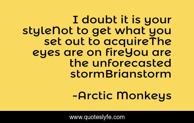 This page presents the quote "I doubt it is your styleNot to get what you set out to acquireThe eyes are on fireYou are the unforecasted stormBrianstorm". Author of this quote is Arctic Monkeys. .
