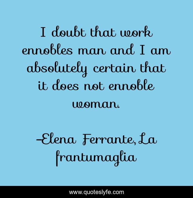 "Elena Ferrante, La frantumaglia Quotes." Quoteslyfe.com, 2025. Sun. 07 Dec. 2025. <https://www.quoteslyfe.com/quote/I-doubt-that-work-ennobles-man-and-72092>.