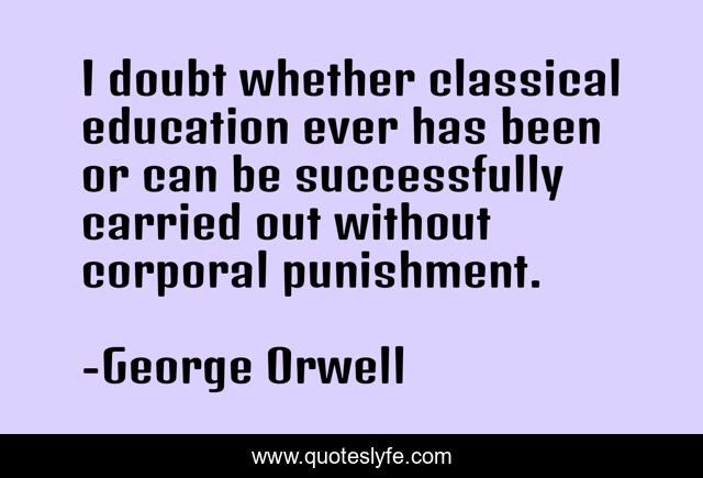 This page presents the quote "I doubt whether classical education ever has been or can be successfully carried out without corporal punishment.". Author of this quote is George Orwell. This quote is about doubt, punishment, without,.