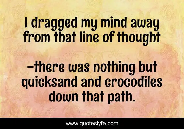 "there was nothing but quicksand and crocodiles down that path. Quotes." Quoteslyfe.com, 2025. Fri. 05 Dec. 2025. <https://www.quoteslyfe.com/quote/I-dragged-my-mind-away-from-that-250898>.