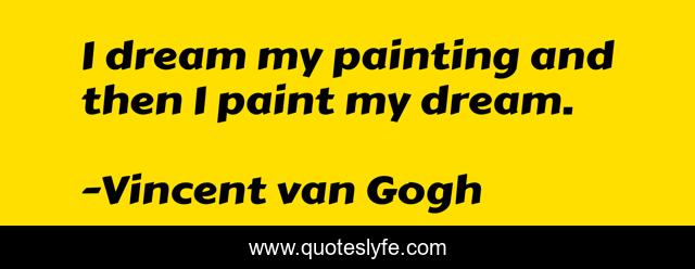 This page presents the quote "I dream my painting and then I paint my dream.". Author of this quote is Vincent van Gogh. This quote is about painters, painting,.