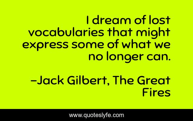 "Jack Gilbert, The Great Fires Quotes." Quoteslyfe.com, 2026. Wed. 14 Jan. 2026. <https://www.quoteslyfe.com/quote/I-dream-of-lost-vocabularies-that-might-112477>.