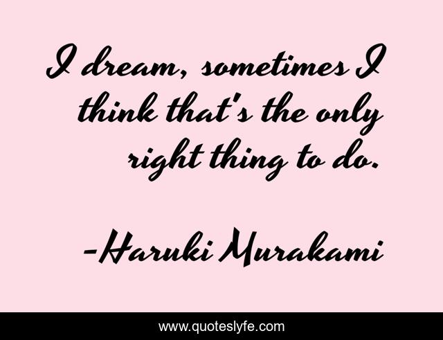 This page presents the quote "I dream, sometimes I think that's the only right thing to do.". Author of this quote is Haruki Murakami. This quote is about dreaming, life, sputnik-sweetheart, murakami,.