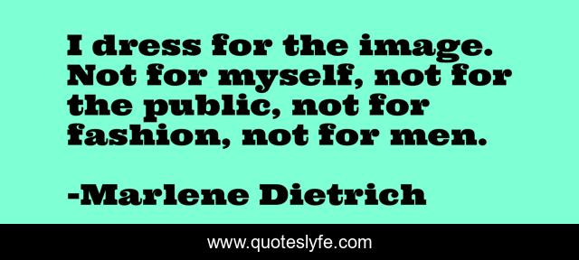 "Marlene Dietrich Quotes." Quoteslyfe.com, 2025. Mon. 08 Dec. 2025. <https://www.quoteslyfe.com/quote/I-dress-for-the-image-Not-for-326676>.