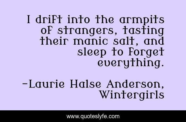 "Laurie Halse Anderson, Wintergirls Quotes." Quoteslyfe.com, 2025. Fri. 05 Dec. 2025. <https://www.quoteslyfe.com/quote/I-drift-into-the-armpits-of-strangers-199174>.