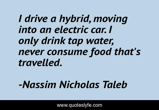 "Nassim Nicholas Taleb Quotes." Quoteslyfe.com, 2025. Fri. 05 Dec. 2025. <https://www.quoteslyfe.com/quote/I-drive-a-hybrid-moving-into-an-300935>.