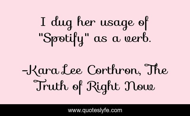 "Kara Lee Corthron, The Truth of Right Now Quotes." Quoteslyfe.com, 2025. Fri. 05 Dec. 2025. <https://www.quoteslyfe.com/quote/I-dug-her-usage-of-Spotify-as-159091>.