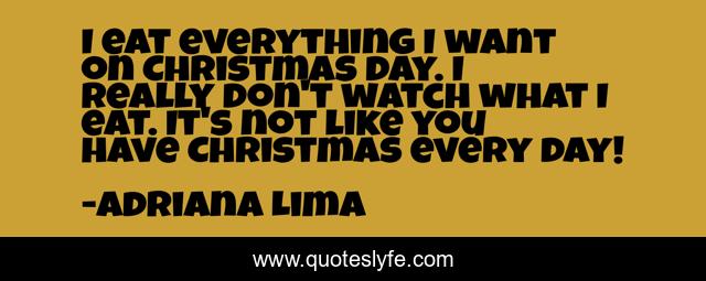 This page presents the quote "I eat everything I want on Christmas day. I really don't watch what I eat. It's not like you have Christmas every day!". Author of this quote is Adriana Lima. This quote is about every day, day,.