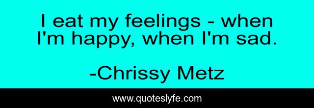 This page presents the quote "I eat my feelings - when I'm happy, when I'm sad.". Author of this quote is Chrissy Metz. This quote is about happy, eat, feelings,.