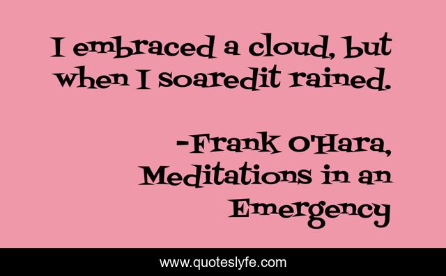 "Frank O'Hara, Meditations in an Emergency Quotes." Quoteslyfe.com, 2025. Fri. 05 Dec. 2025. <https://www.quoteslyfe.com/quote/I-embraced-a-cloud-but-when-I-19263>.