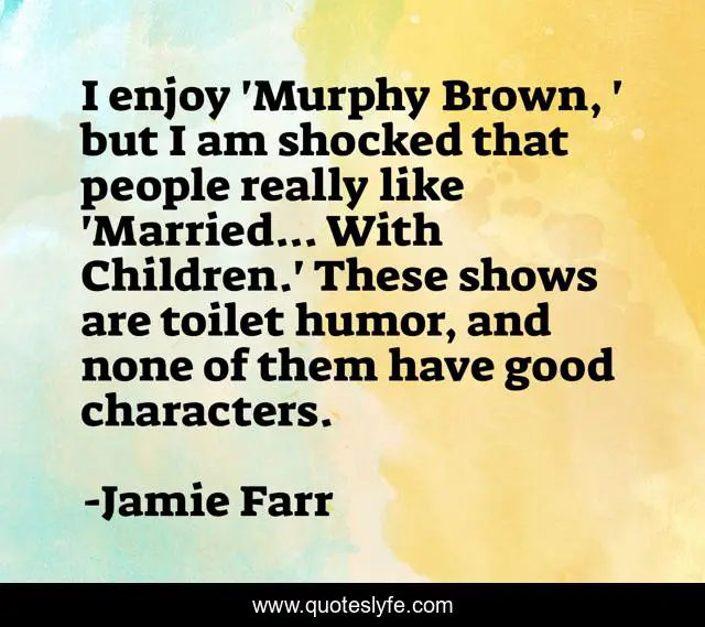 This page presents the quote "I enjoy 'Murphy Brown, ' but I am shocked that people really like 'Married... With Children.' These shows are toilet humor, and none of them have good characters.". Author of this quote is Jamie Farr. This quote is about good, children,.